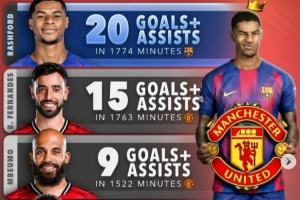 体育资讯1月23日讯 本赛季曼联外租巴萨的前锋拉什福德发挥出色,各项赛事1774分钟出场已经直接参与20粒进球(8球12助)。