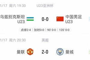 U23亚洲杯1/4决赛,U23国足点球淘汰乌兹别克斯坦,曼城0-2曼联